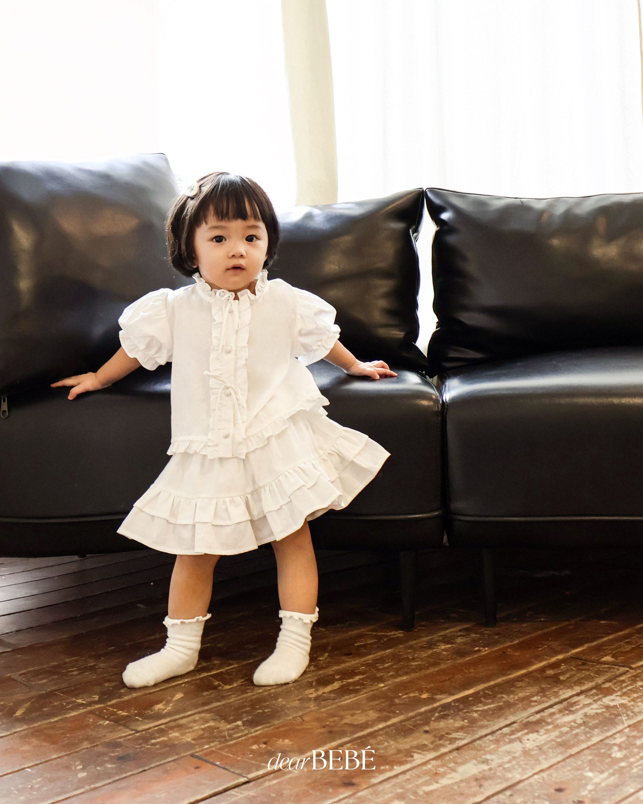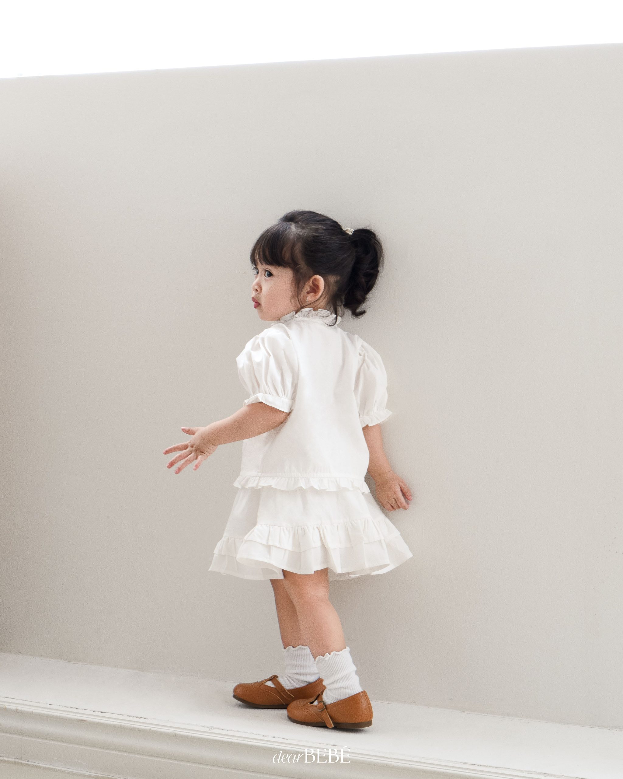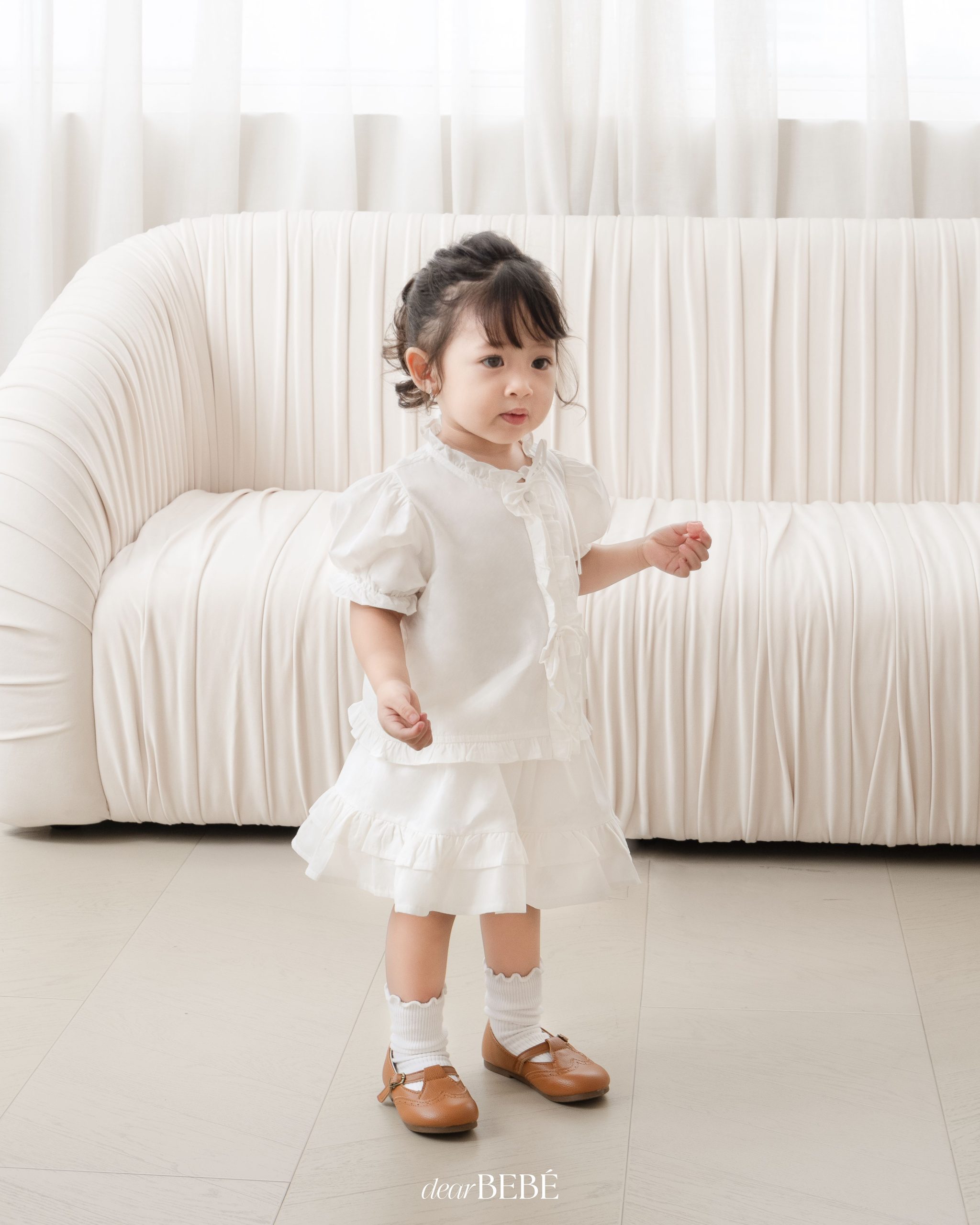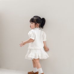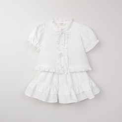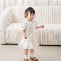 Với vẻ ngoài ngọt ngào và tinh tế, set đồ white-on-white từ BST Pre-fall’24 sẽ luôn là lựa chọn tuyệt vời dành cho bé yêu vào những ngày đầu thu mát mẻ. Thiết kế nổi bật với các chi tiết nhún bèo phối nơ, tạo nên sự nữ tính dịu dàng nhưng vẫn thanh lịch tinh tế, giúp bé yêu luôn tỏa sáng trong mọi khoảnh khắc.