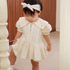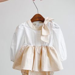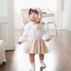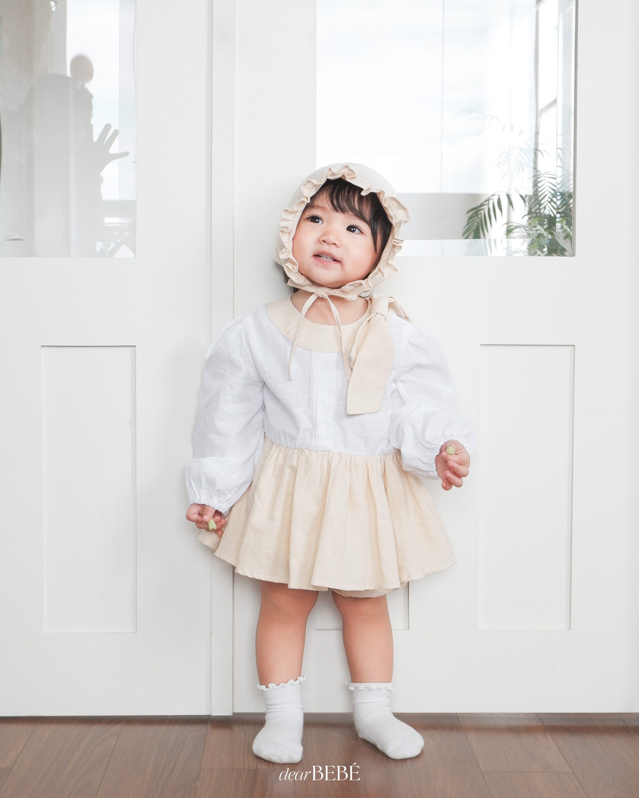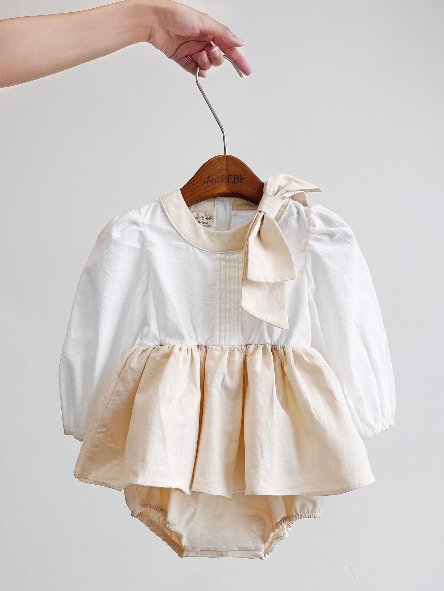 Một trong những mẫu Bodysuit ngay từ khi ra mắt đã được ba mẹ yêu thích lựa chọn. Được làm từ chất liệu tự nhiên linen – cotton, mẫu váy liền quần với điểm nhấn là chiếc nơ to bản chắc chắn sẽ là lựa chọn hoàn hảo cho những ngày gió lạnh đầu mùa!