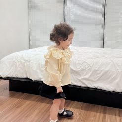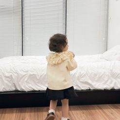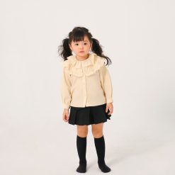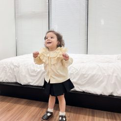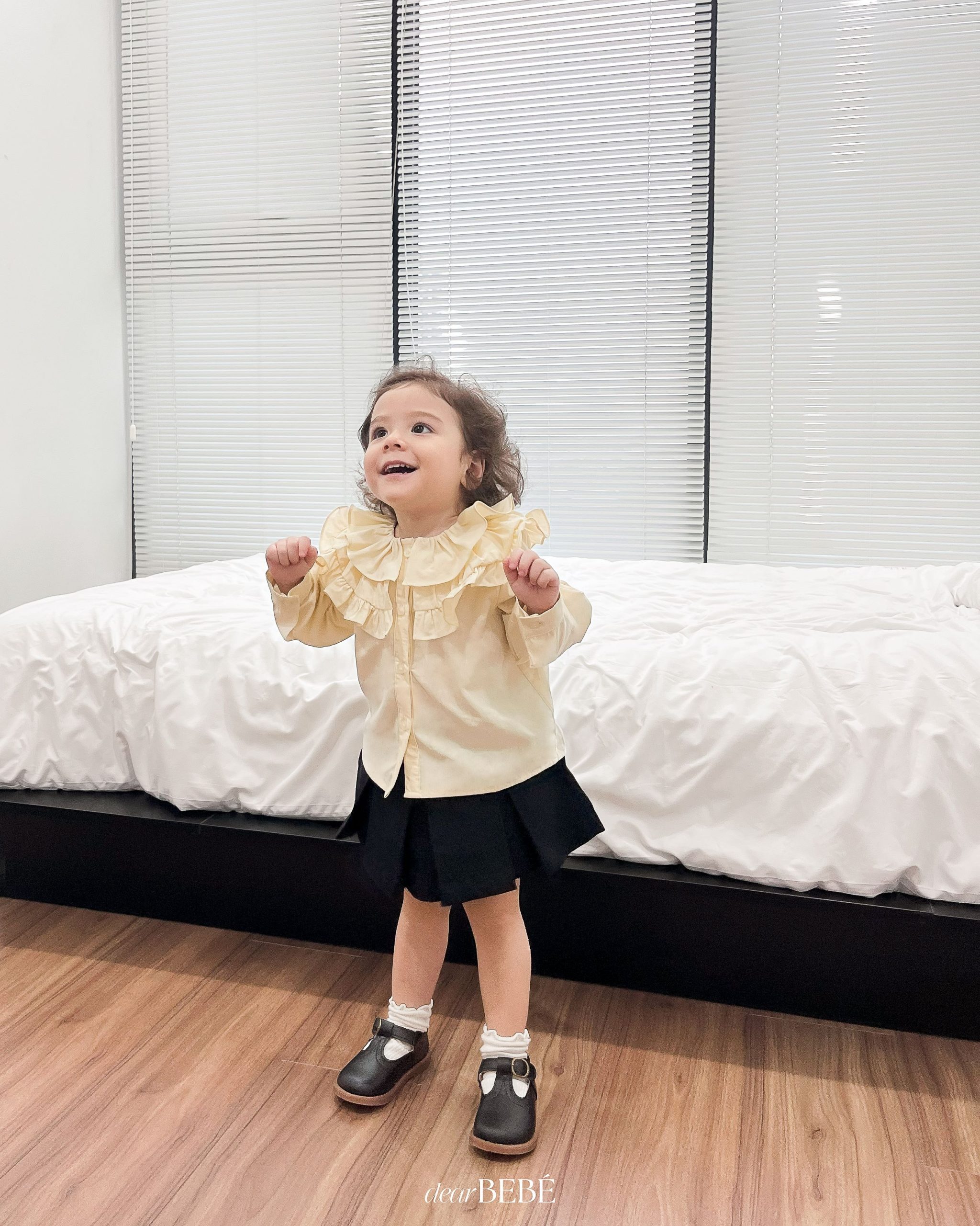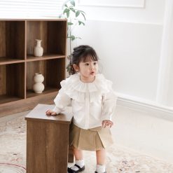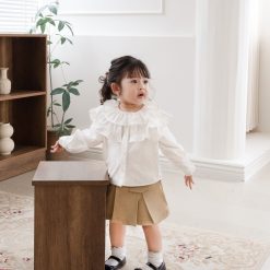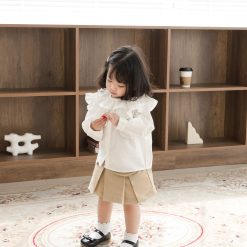 Chân váy ngắn xếp ly phối nắp túi giả phía trước. Cạp thun co giãn có thể điều chỉnh được phía sau. Có quần lót bo thun co giãn bên trong.