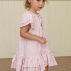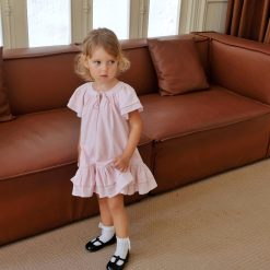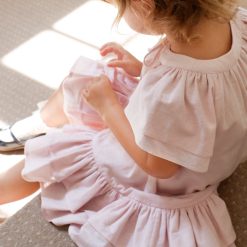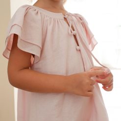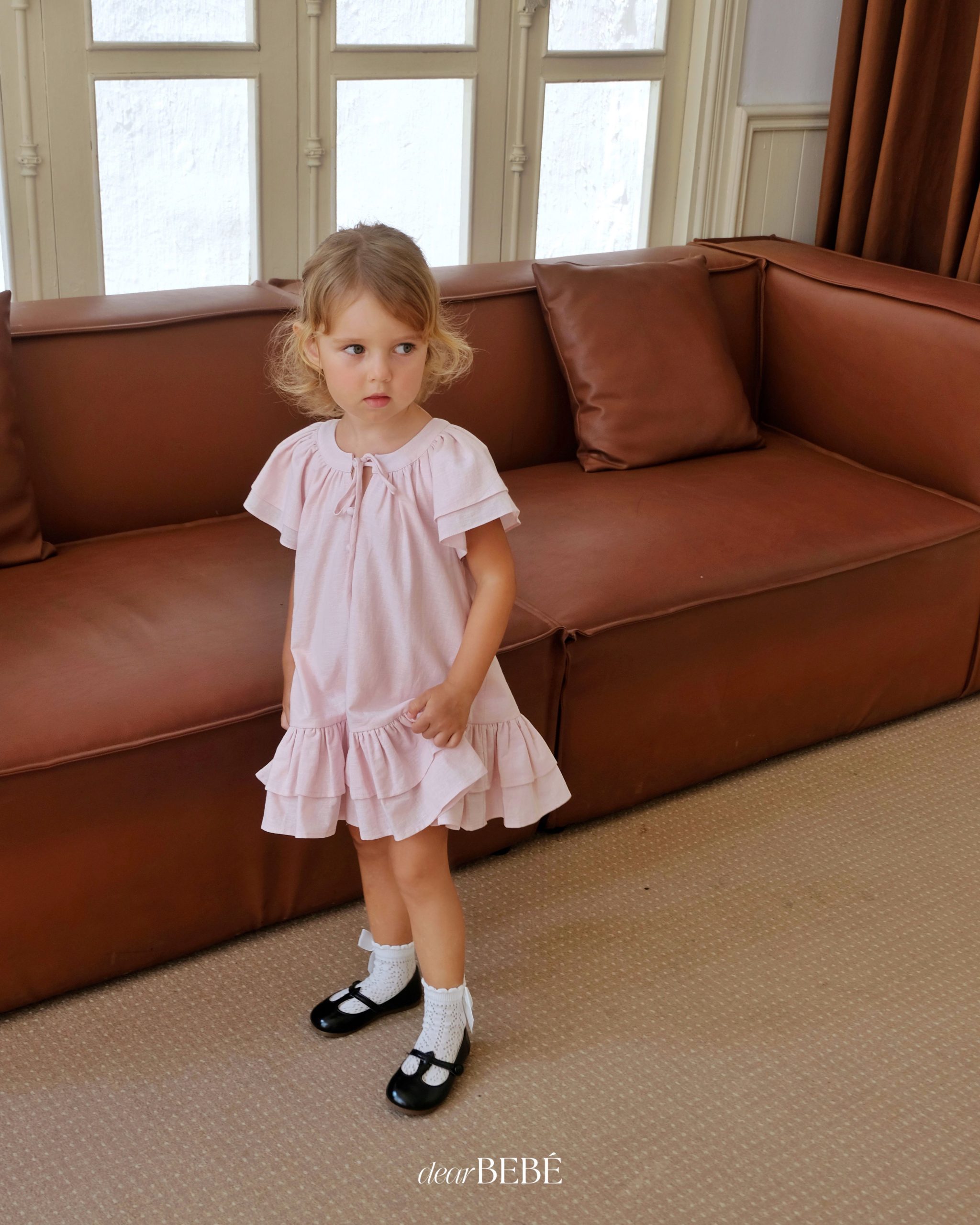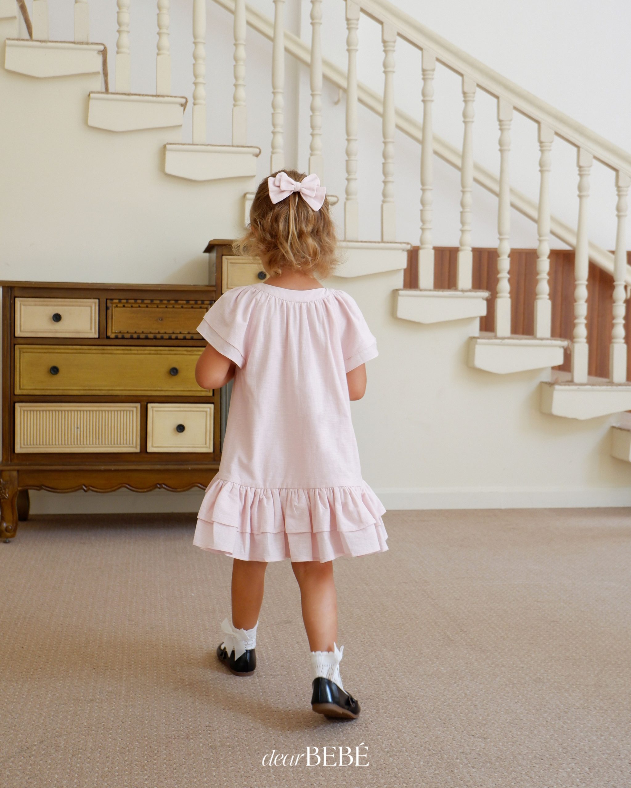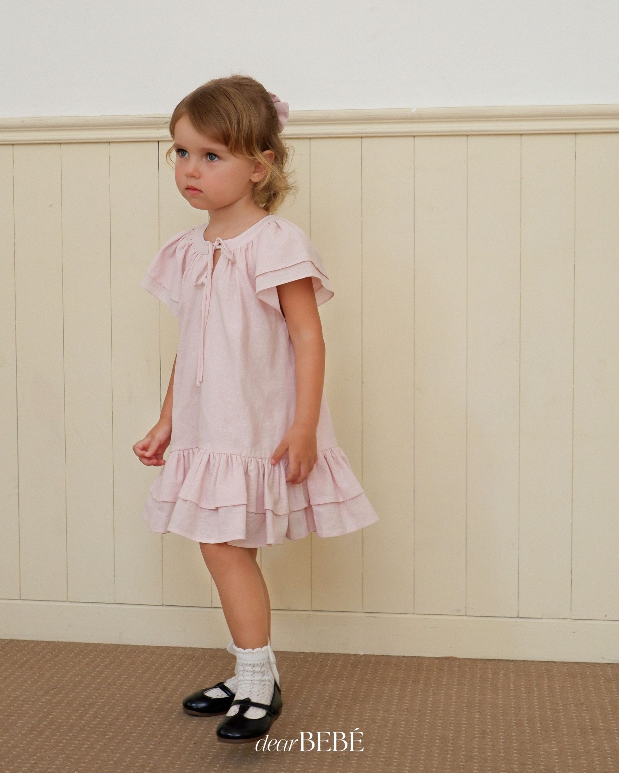 Dear BEBÉ giới thiệu đến bạn thiết kế đầu tiên trong BST Dear Summer 2025 mang theo hơi thở mùa hè dịu dàng và trong trẻo. Mẫu váy được thiết kế dáng chữ A nhẹ nhàng, cùng điểm nhấn 2 tầng bèo và chi tiết nơ ở cổ, tạo nên vẻ ngoài ngọt ngào cho bé yêu của bạn. Chất vải linen – cotton tự nhiên, mềm mịn và thấm hút tốt, giúp bé thoải mái vui chơi cả ngày dài.